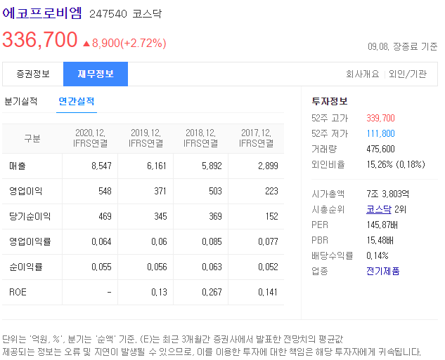 - 동사는 2016년 5월 1일을 분할기일로 하여 에코프로의 이차전지소재 사업부문이 물적분할되어 신설되었음. 2019년 3월 코스닥 시장에 상장하였음.