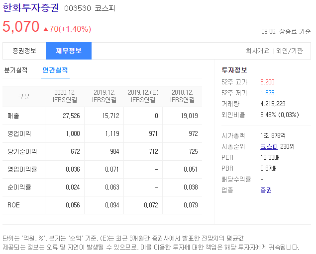 - 동사는 매매, 위탁매매, 집합투자업, 투자자문/일임업, 신탁업 등을 영위하고 있으며, 현재 한화자산운용이 최대주주 (지분율 19.63%) 임.